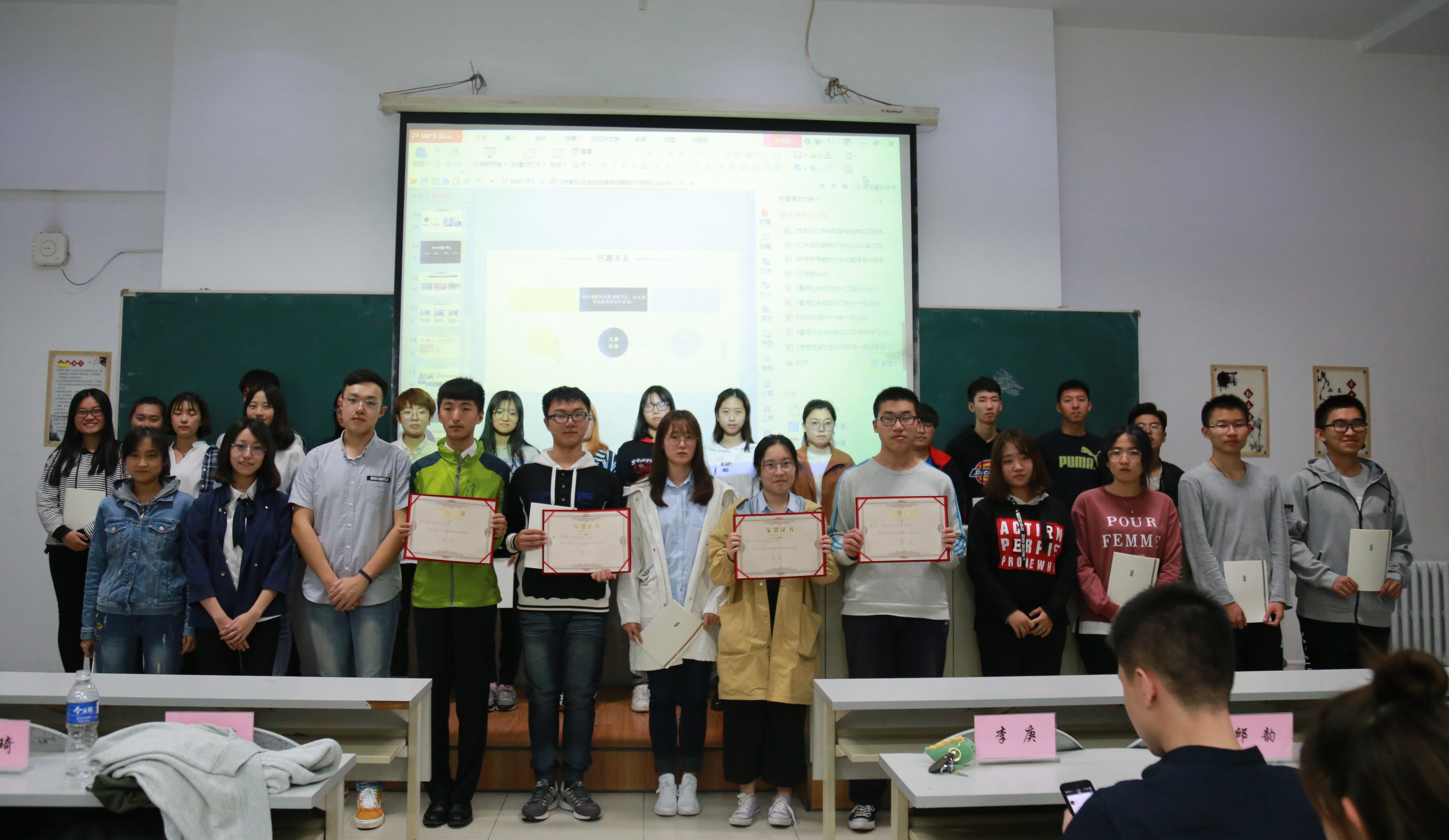 大会第二项:实践成果评比。在评比之前,先由主持人介绍了评比规则及奖项设置。评比规则:第一部分是活动前期金沙集团1862cc微信公众号投票,该分数占最终结果的百分之三十。第二部分是评委团评选分数:李庚老师以及主席团成员作为评审团给各代表队打分,该成绩占百分之七十。接下来各实践队代表上台展示了他们的实践经历以及成果。综合两部分的分数,共评选出一等奖两名,二等奖四名,三等奖三名。一等奖:小“数”林支教团以及金沙集团1862cc河南精准扶贫考察小组;二等奖:统计二班“心之小队”,计算一班“梦之队”,“追随总书记,重走初心路”学习团,计算二班“不忘初心”践行队;三等奖:数一&金数吉商志愿团、数应二班红色宣讲团 、统计一班爱心接力志愿者团。由团委书记李庚老师、团委副书记兼社团联合会主席郑旭东、团委副书记李潇琦、学生会主席邱韵分别为获奖队伍颁发奖杯,荣誉证书以及奖品。