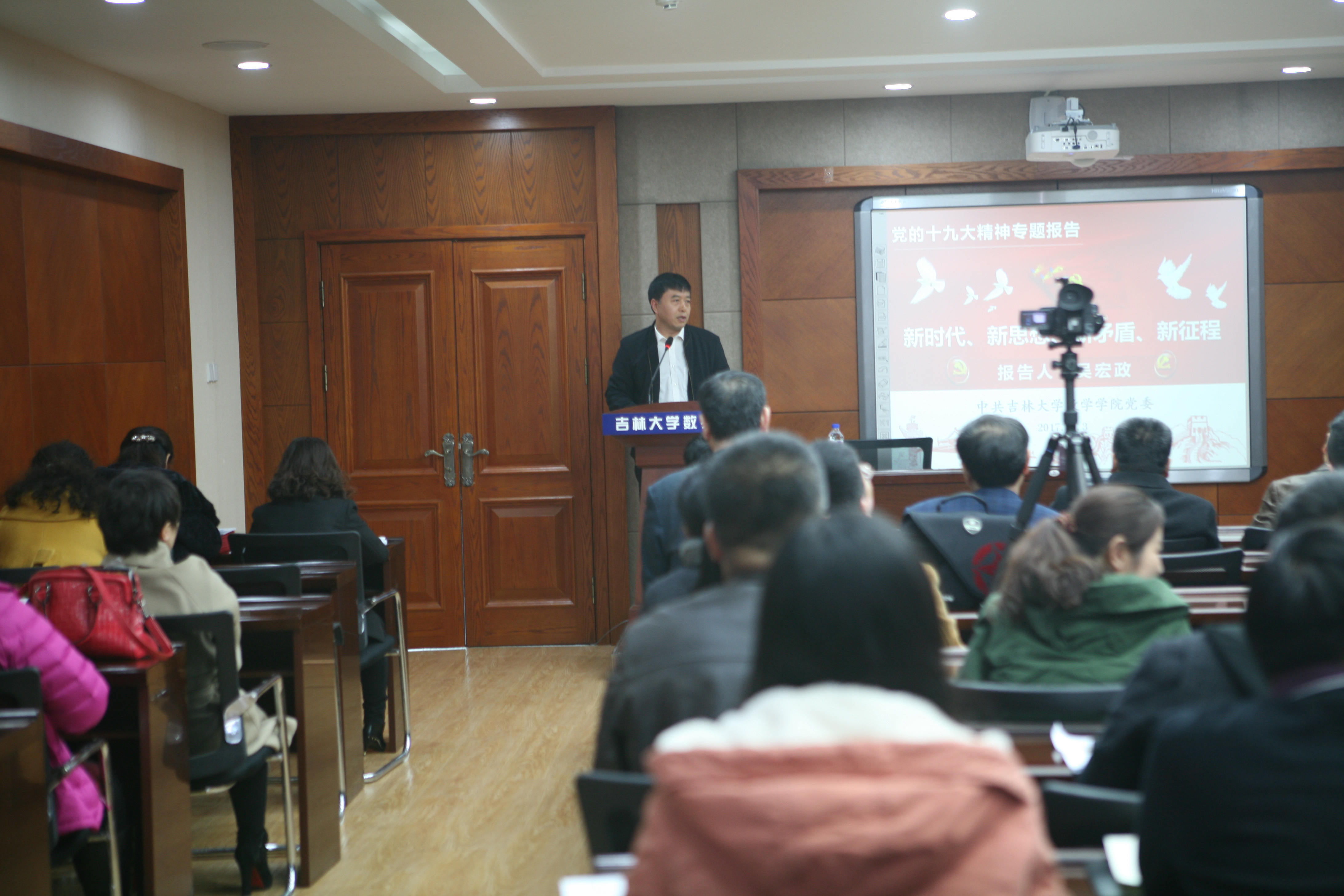 在报告中,吴宏政教授紧紧围绕党的十九大报告作了领学、阐释和精读。他重点解读了党的十九大提出的新时代、新思想、新矛盾和新征程等报告亮点,从这几个亮点为切入点,深刻阐释了党的十九大的重大现实和历史意义,使与会党员进一步深刻领会了党的十九大精神内涵,进一步准确把握了习近平新时代中国特色社会主义思想。